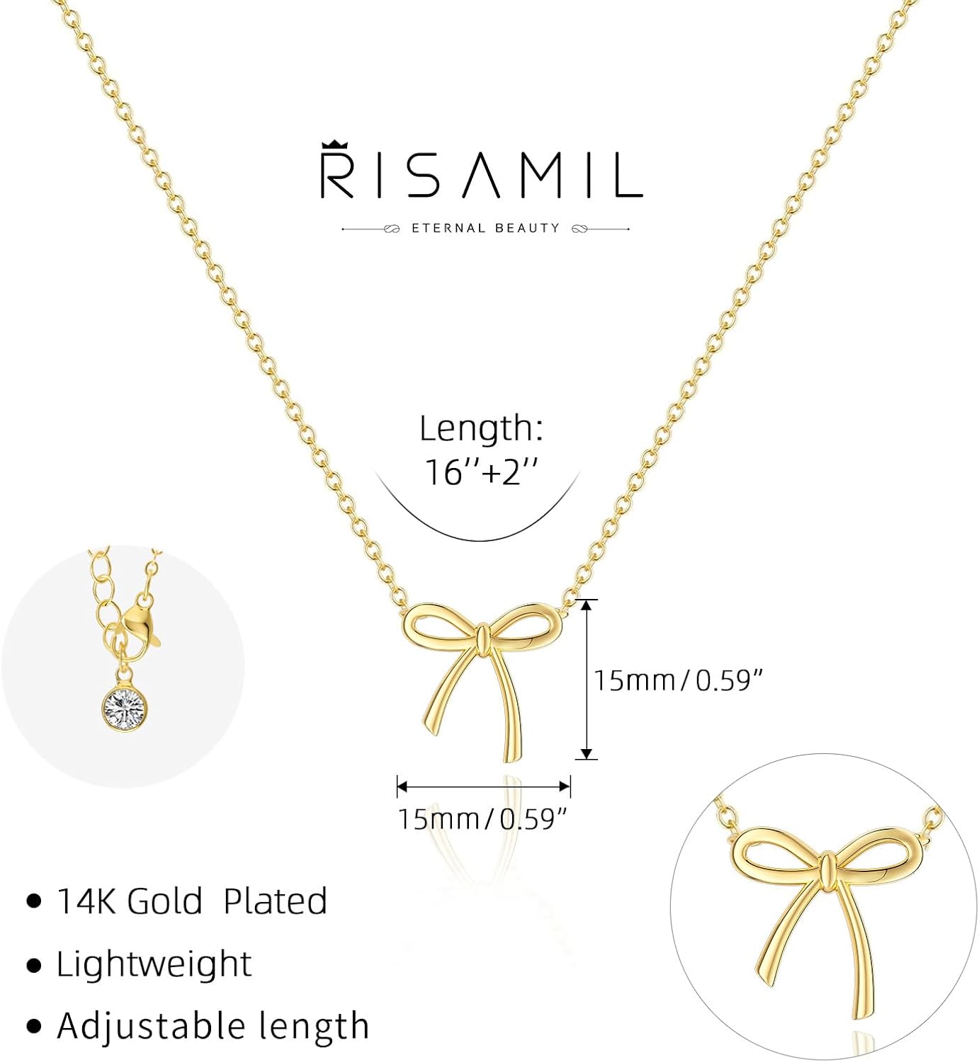 Introducing the perfect accessory to elevate any outfit - the Gold Bow Necklace for Women. Made from high-quality 14K gold, this dainty and cute necklace features a small, tiny bow pendant that adds a touch of charm and elegance to your look. The choker chain design is trendy and versatile, making it ideal for both casual and formal occasions.