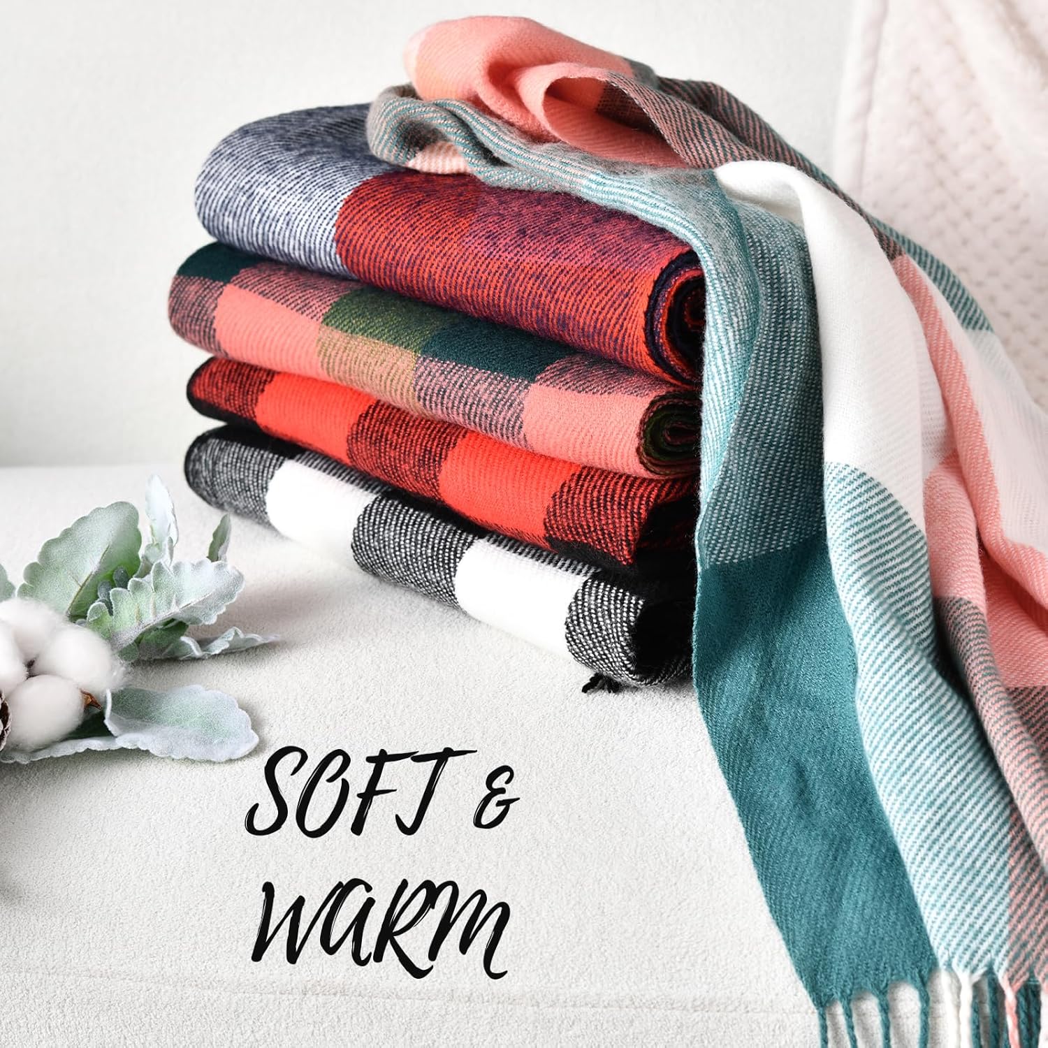 Stay warm and stylish this winter with our Women's Winter Scarf. Made with a luxurious cashmere feel, this plaid scarf is not only incredibly soft but also adds a fashionable touch to any outfit. Whether you're heading to work, running errands, or attending a special event, this versatile scarf can be worn as a pashmina shawl or wrap, or simply draped over your shoulders as a long blanket scarf. With a variety of classic plaid patterns to choose from, you can mix and match with your favorite winter wardrobe pieces. Stay cozy and chic all season long with our Women's Winter Scarf.